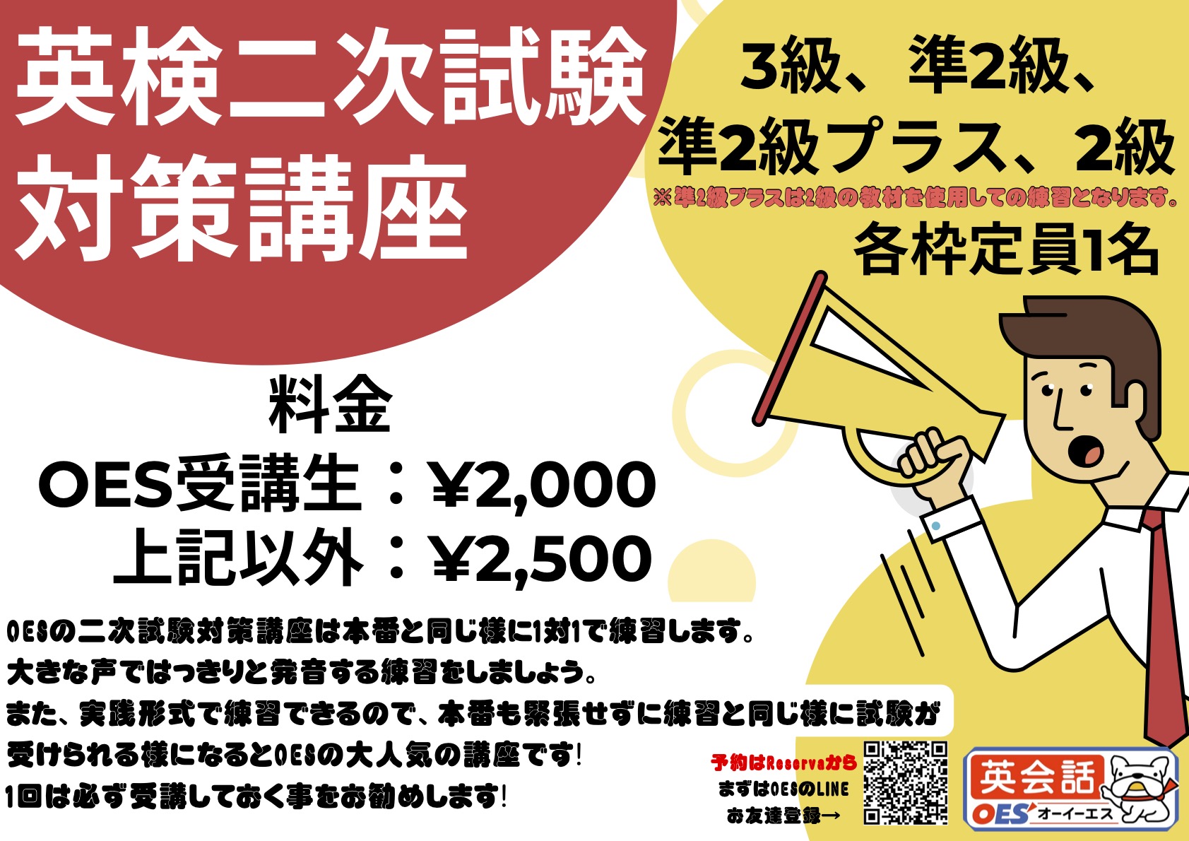 10/6(月)より英検二次試験対策講座が始まります🎉