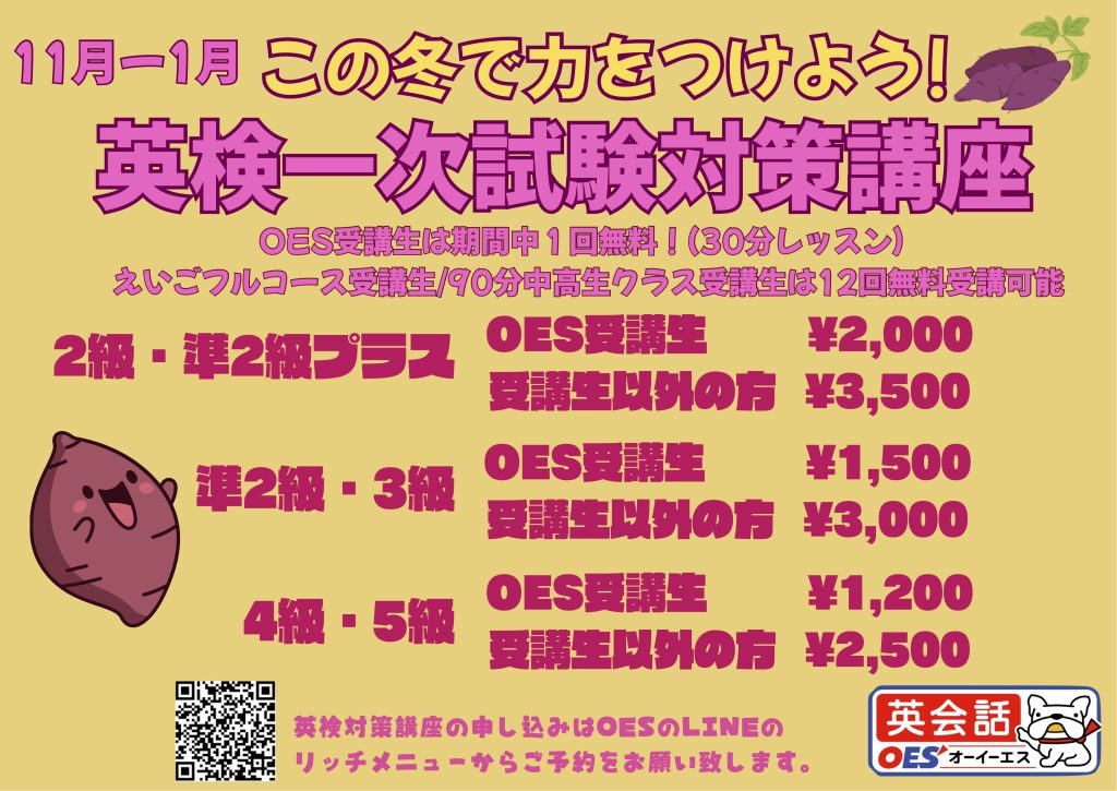 英検一次試験✏️対策講座(11月〜1月)📄の申込受付を開始いたしました😀✨