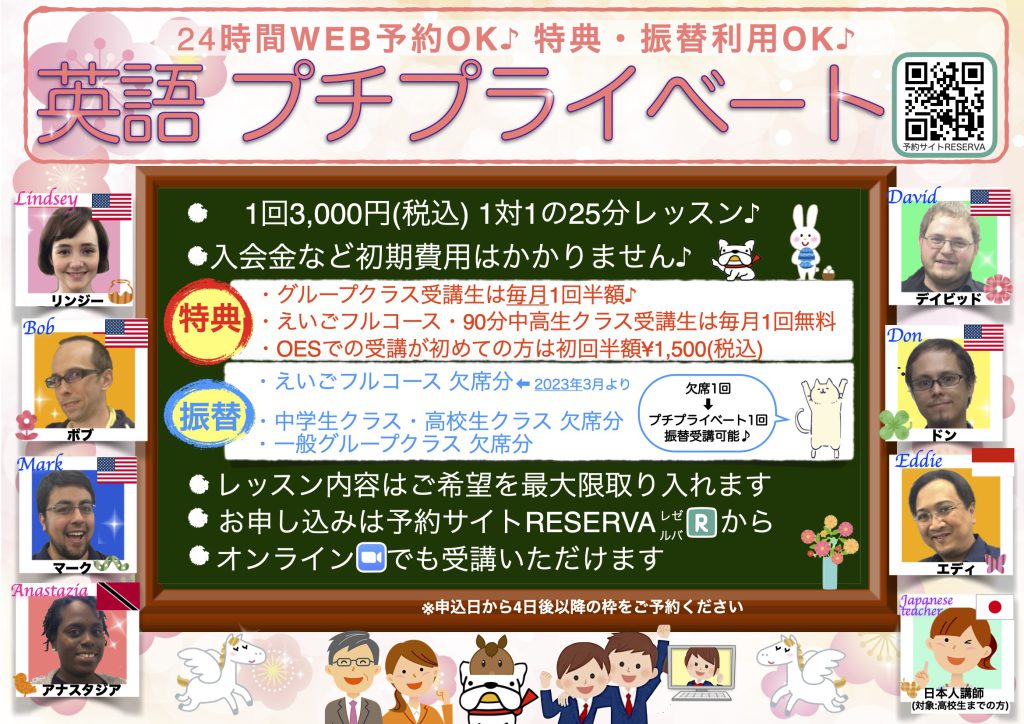 ●日本人講師枠🇯🇵は高校生までの方が対象となります