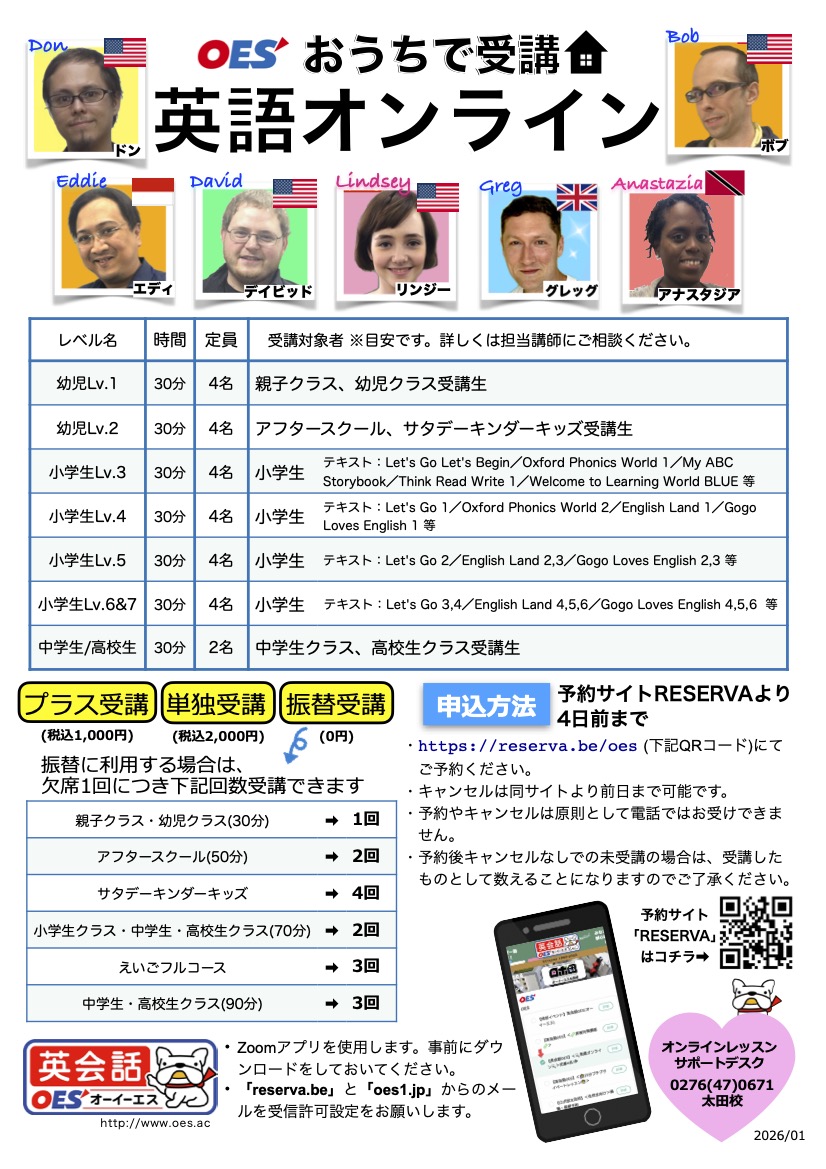 ●レベルがわからない等、ご質問がございましたら各担当講師にお尋ねください。